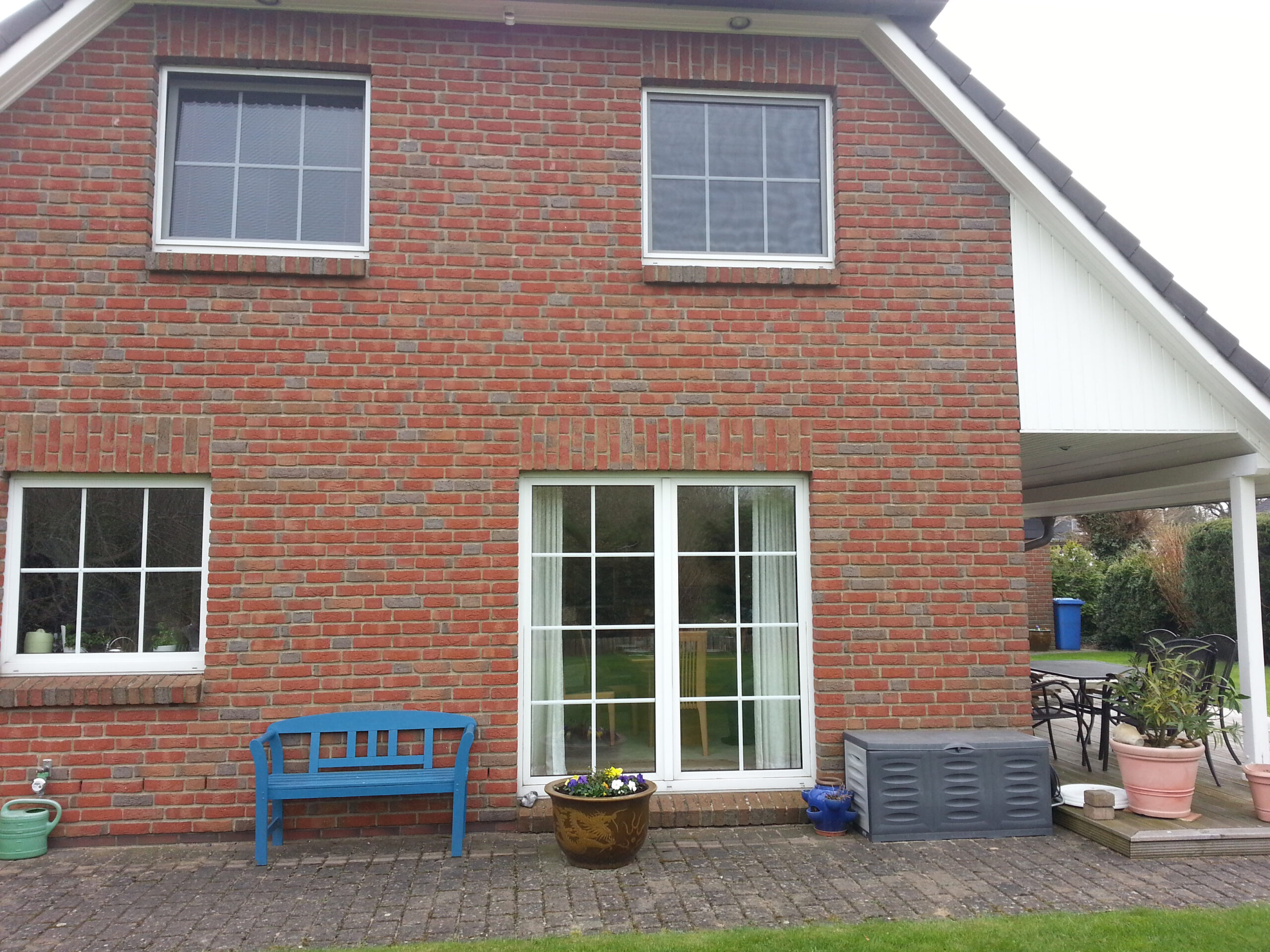 Die Luftschicht der Außenwände mit 70 mm Stärke wurde durch uns mit EPS Dämmperlen ausgefüllt und rundet die energetische Sanierung ab.